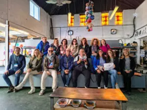 PIC 2 SHOWS: Italian travel agents at Jerpoint Glass Studio, with Mary O’Connor, Tourism Ireland (back row, right).