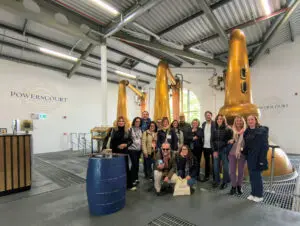 PIC 3 SHOWS: Italian travel agents at Powerscourt Distillery, with Mary O’Connor, Tourism Ireland (right).